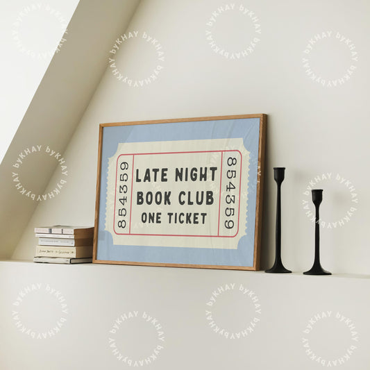 Late Night Book Club Ticket Print