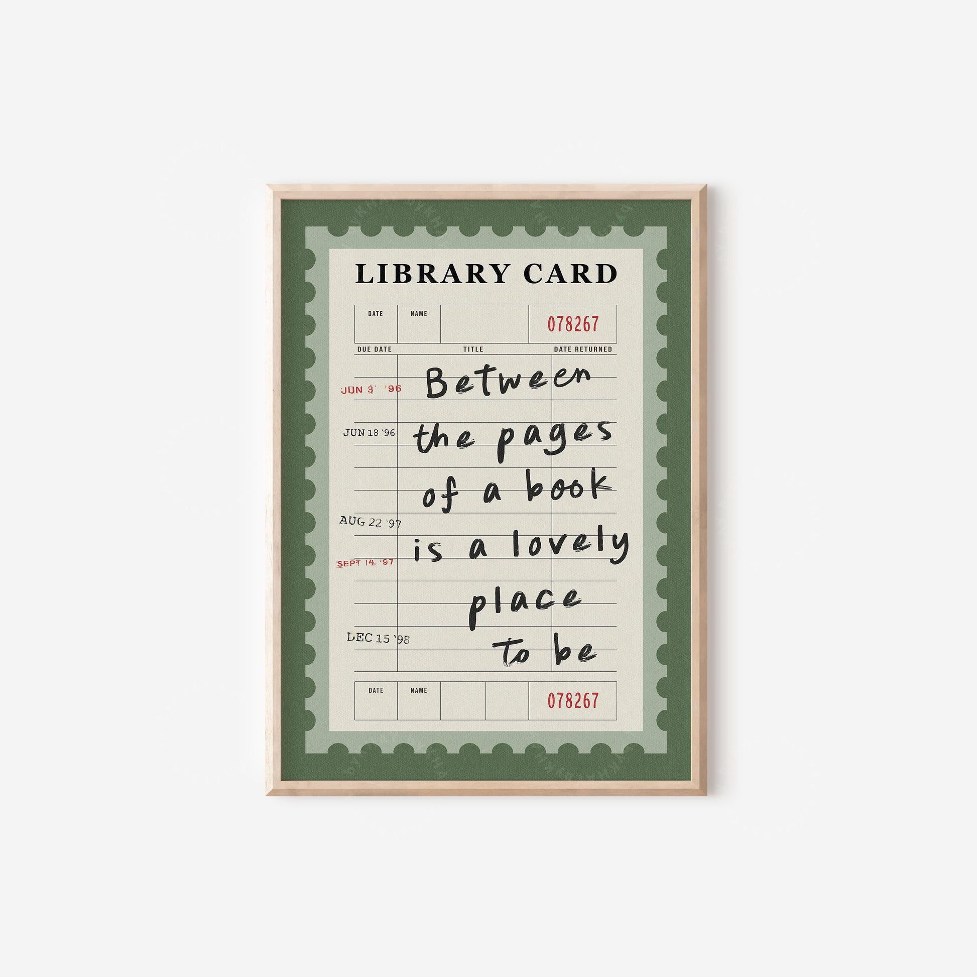 Between The Pages Library Card Green